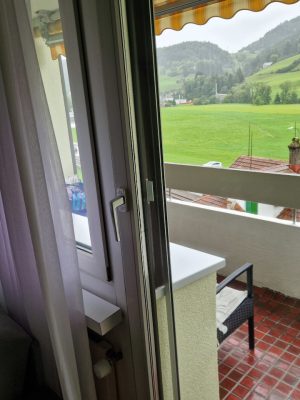 Der südwärts ausgerichtete Balkon erlaubt einen schönen Bergblick.